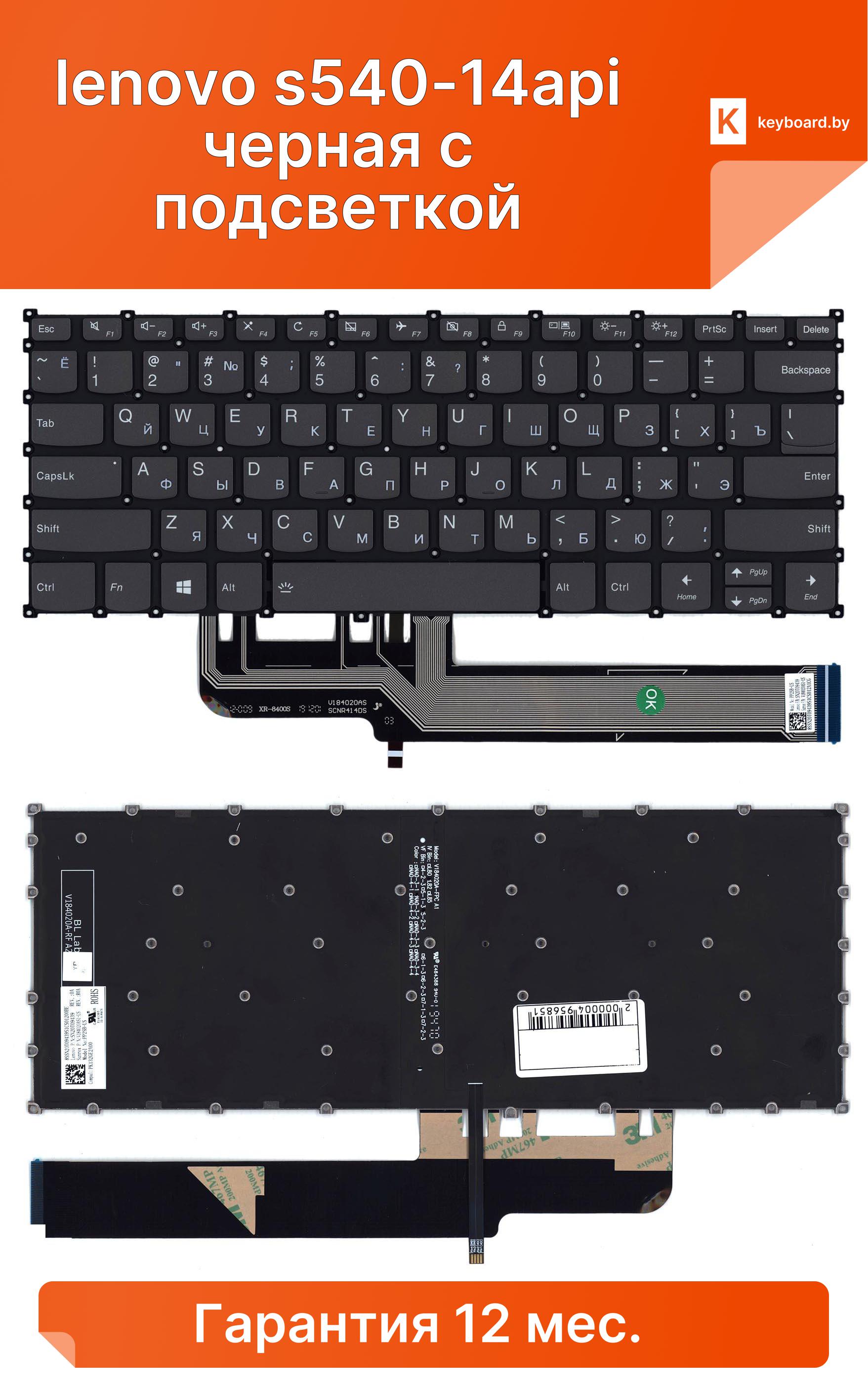 Клавиатура для ноутбука lenovo s540-14api черная с подсветкой