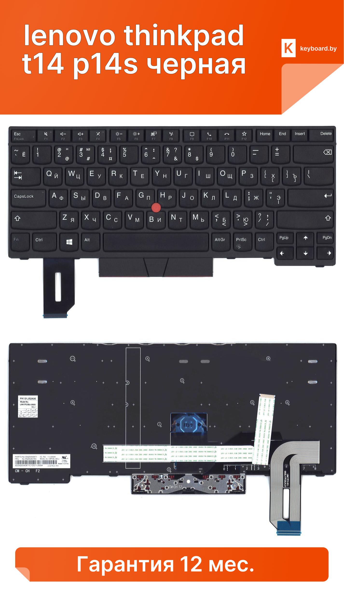 Клавиатура для ноутбука lenovo thinkpad t14 p14s черная