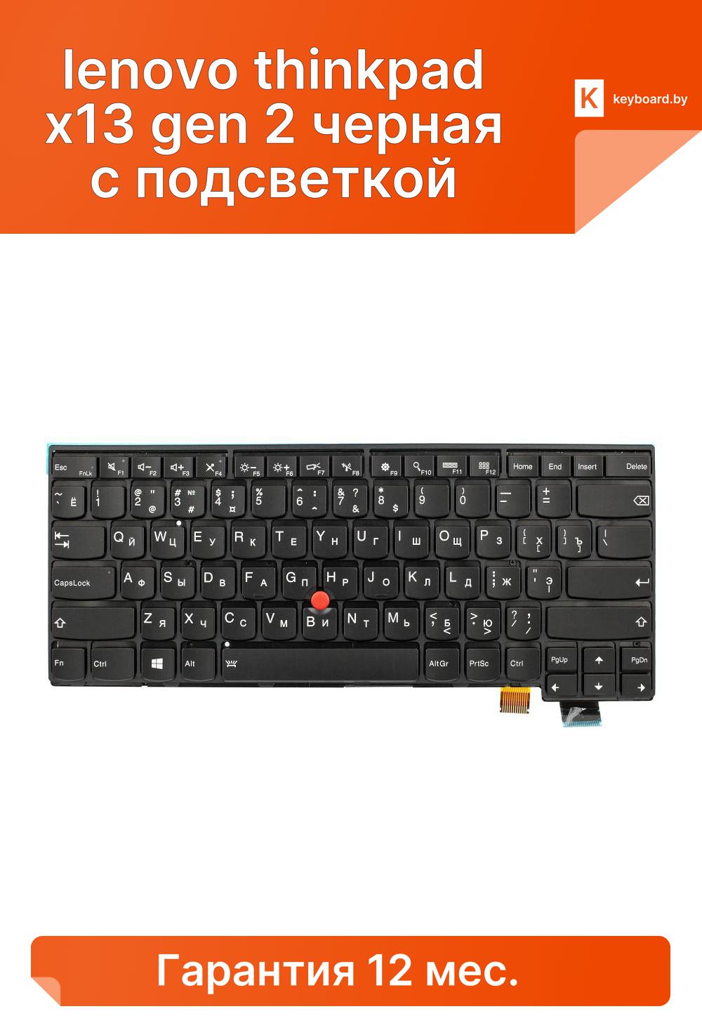 Клавиатура для ноутбука lenovo thinkpad x13 gen 2 черная с подсветкой