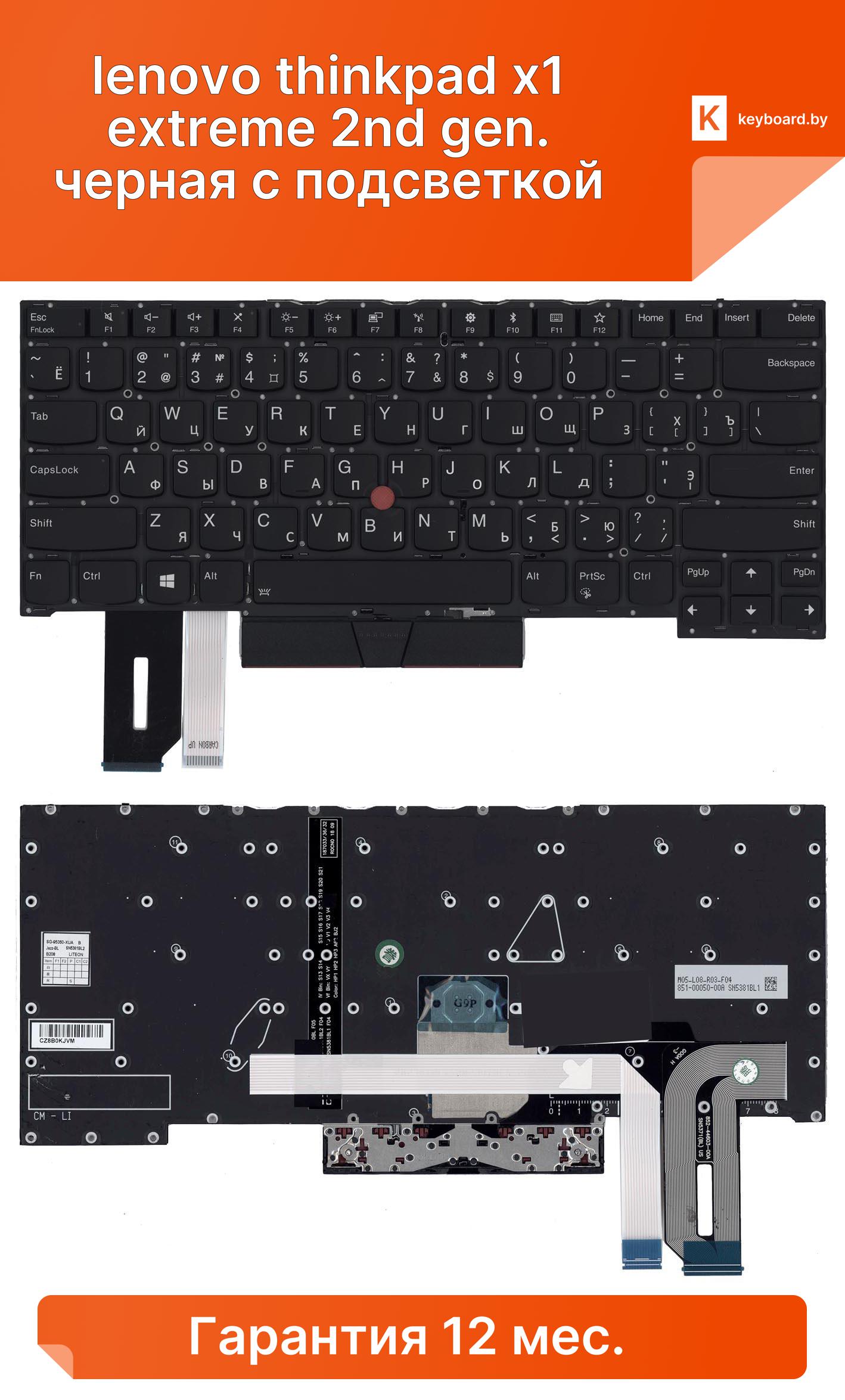 Клавиатура для ноутбука lenovo thinkpad x1 extreme 2nd gen. черная с подсветкой