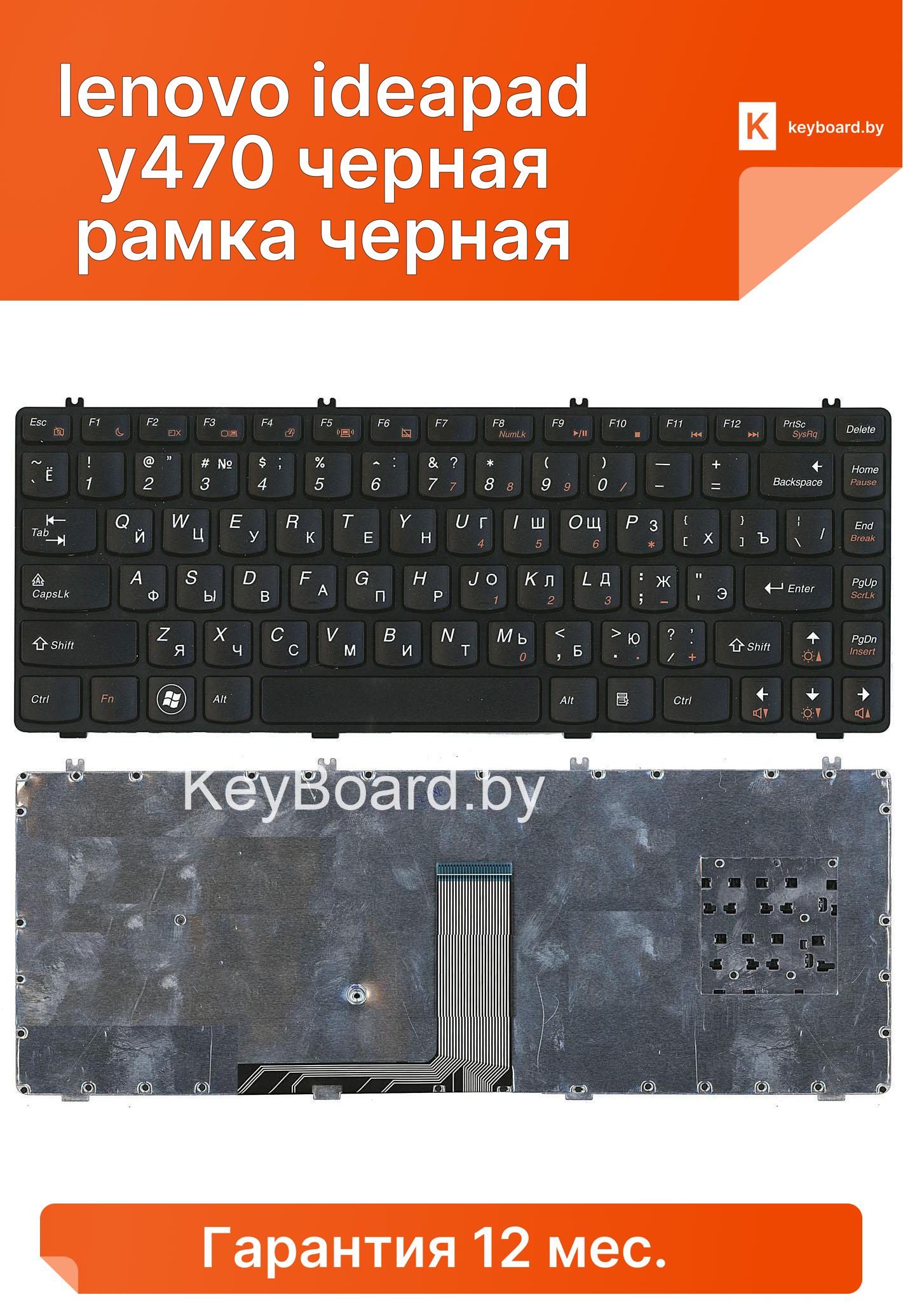 Клавиатура для ноутбука lenovo ideapad y470 черная рамка черная