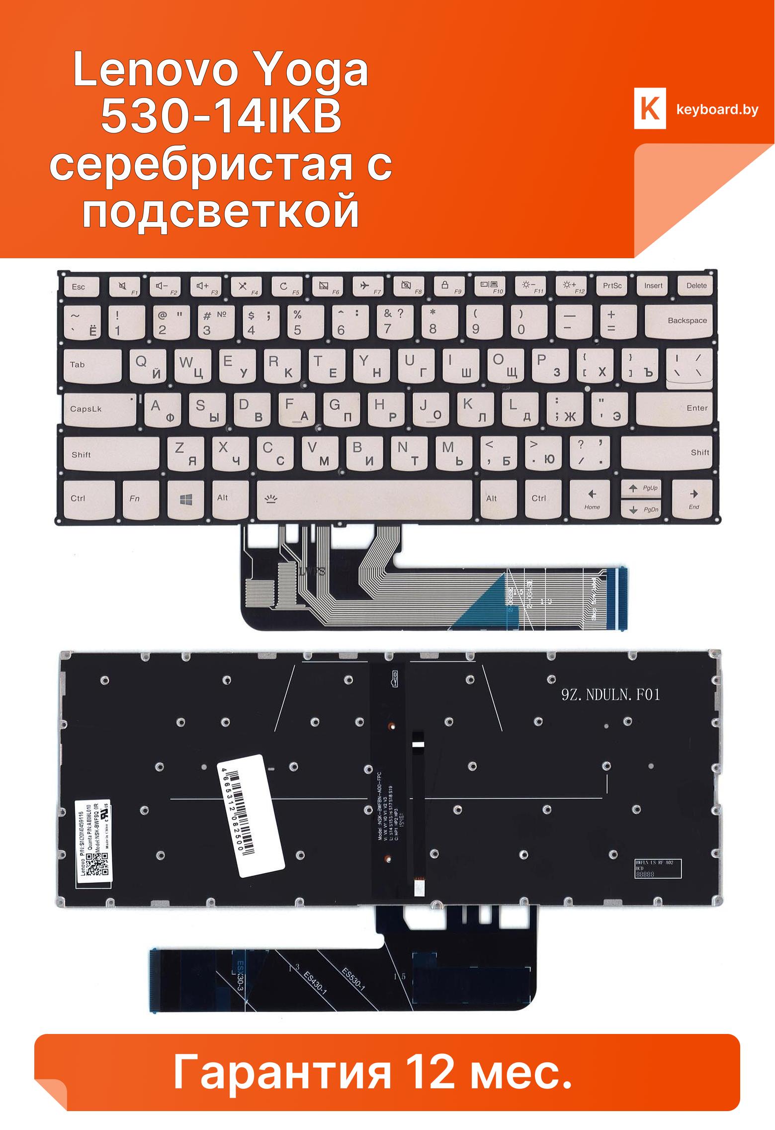 Клавиатура для ноутбука lenovo yoga 530-14ikb серебристая с подсветкой