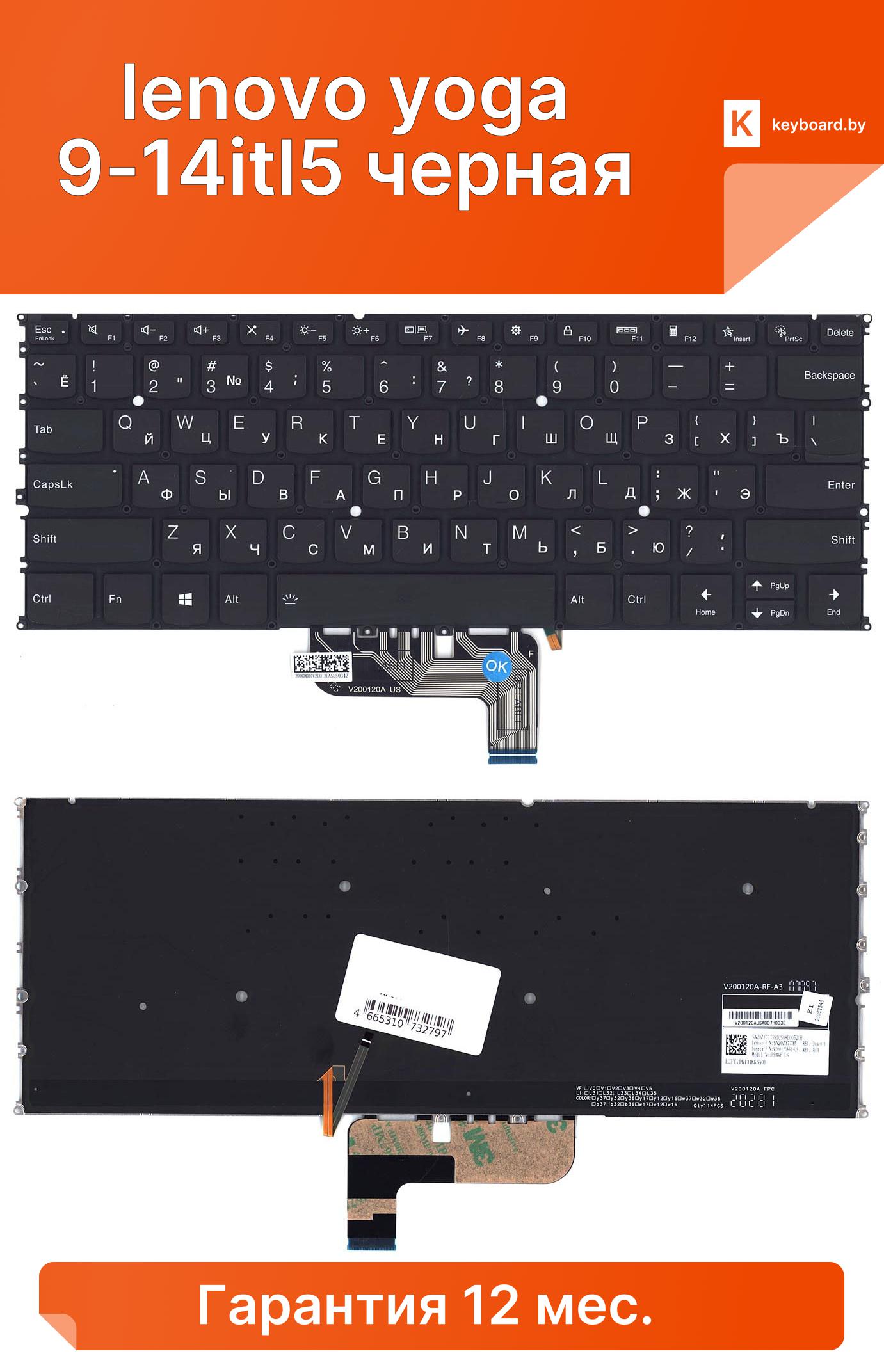 Клавиатура для ноутбука lenovo yoga 9-14itl5 черная