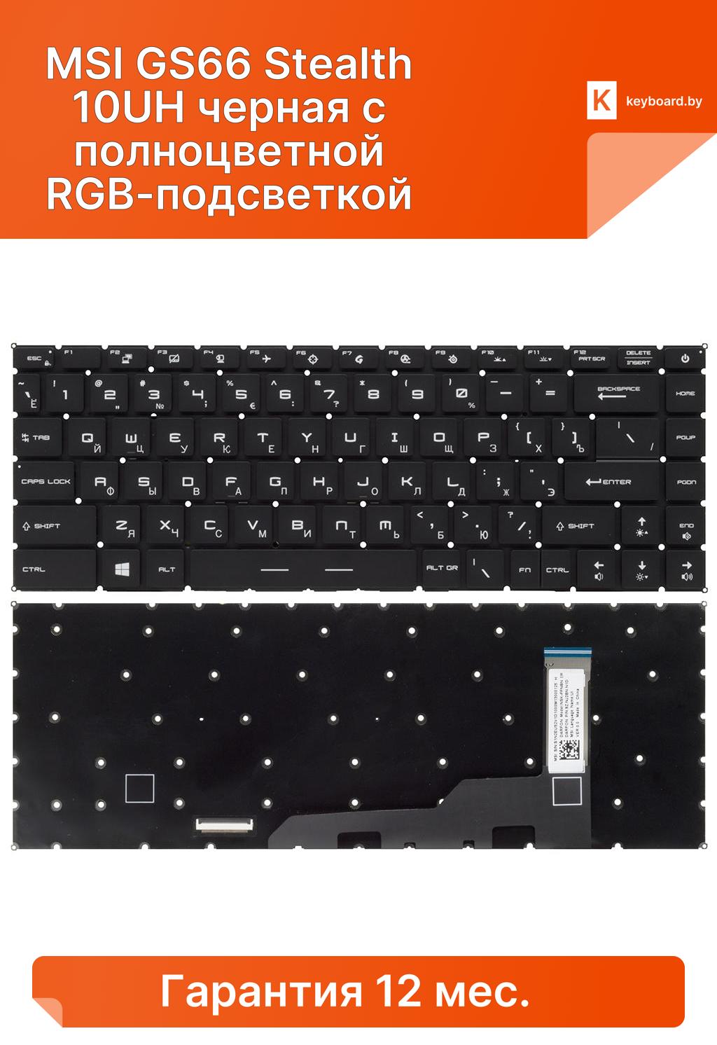 Клавиатура для ноутбука для MSI GS66 Stealth 10UH черная с полноцветной RGB-подсветкой