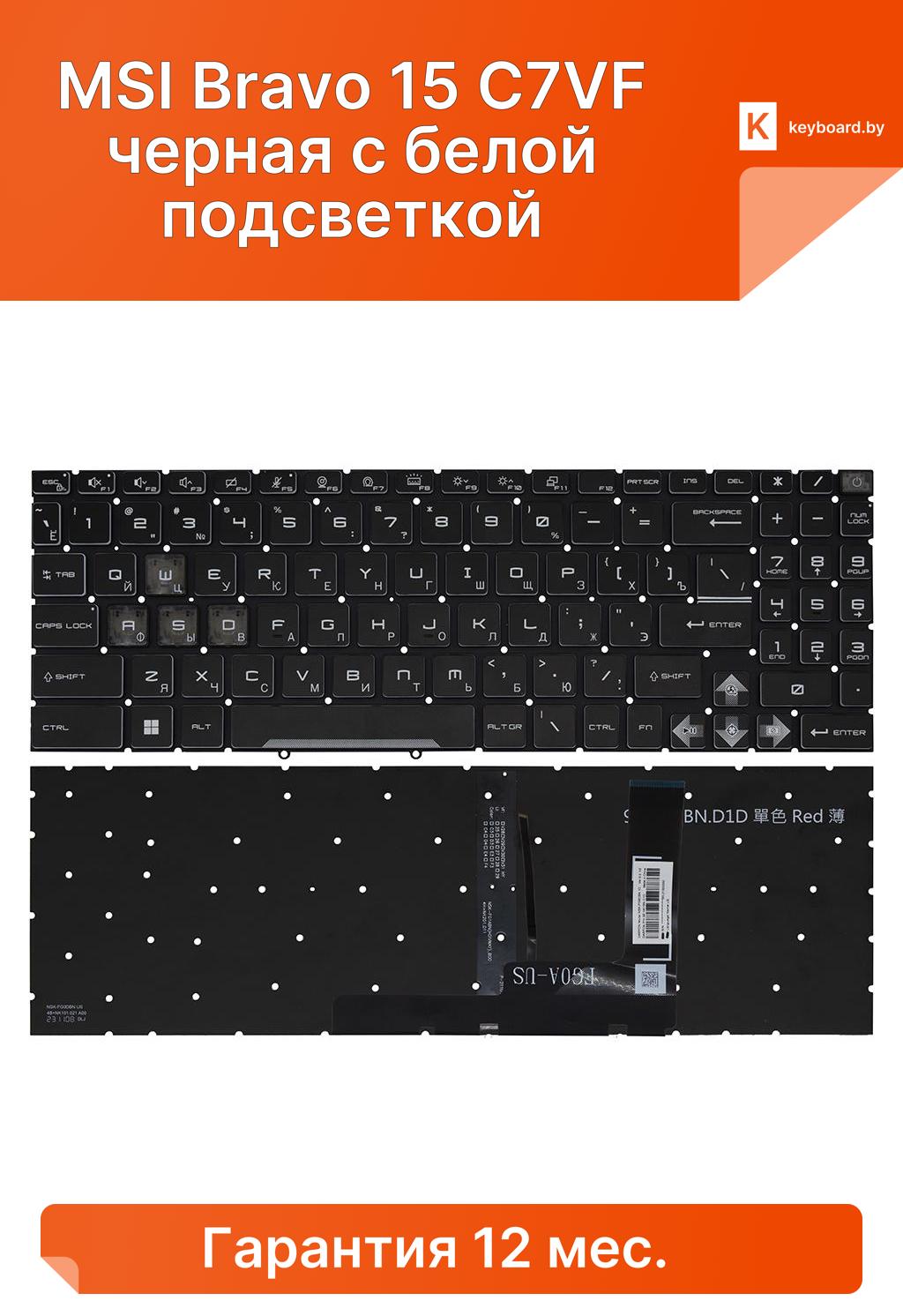 Клавиатура для ноутбука MSI Bravo 17 C7VE черная c белой подсветкой