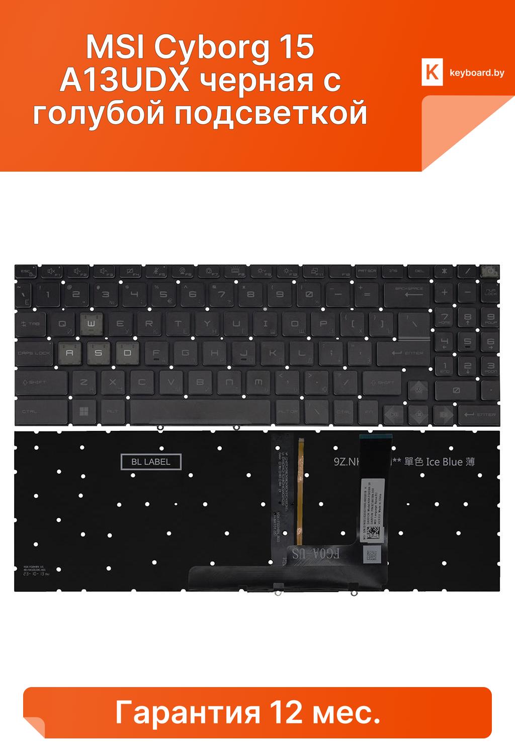 Клавиатура для ноутбука msi cyborg 15 a13udx черная c голубой подсветкой