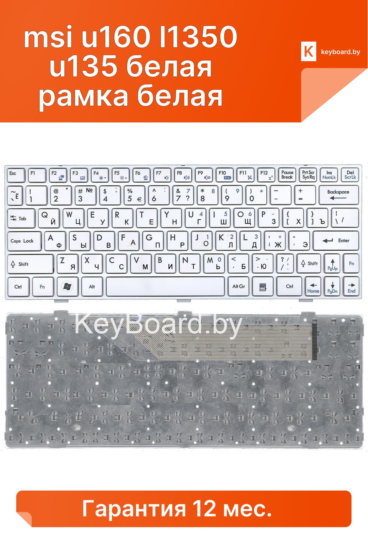 Клавиатура для ноутбука msi u160 l1350 u135 белая рамка белая