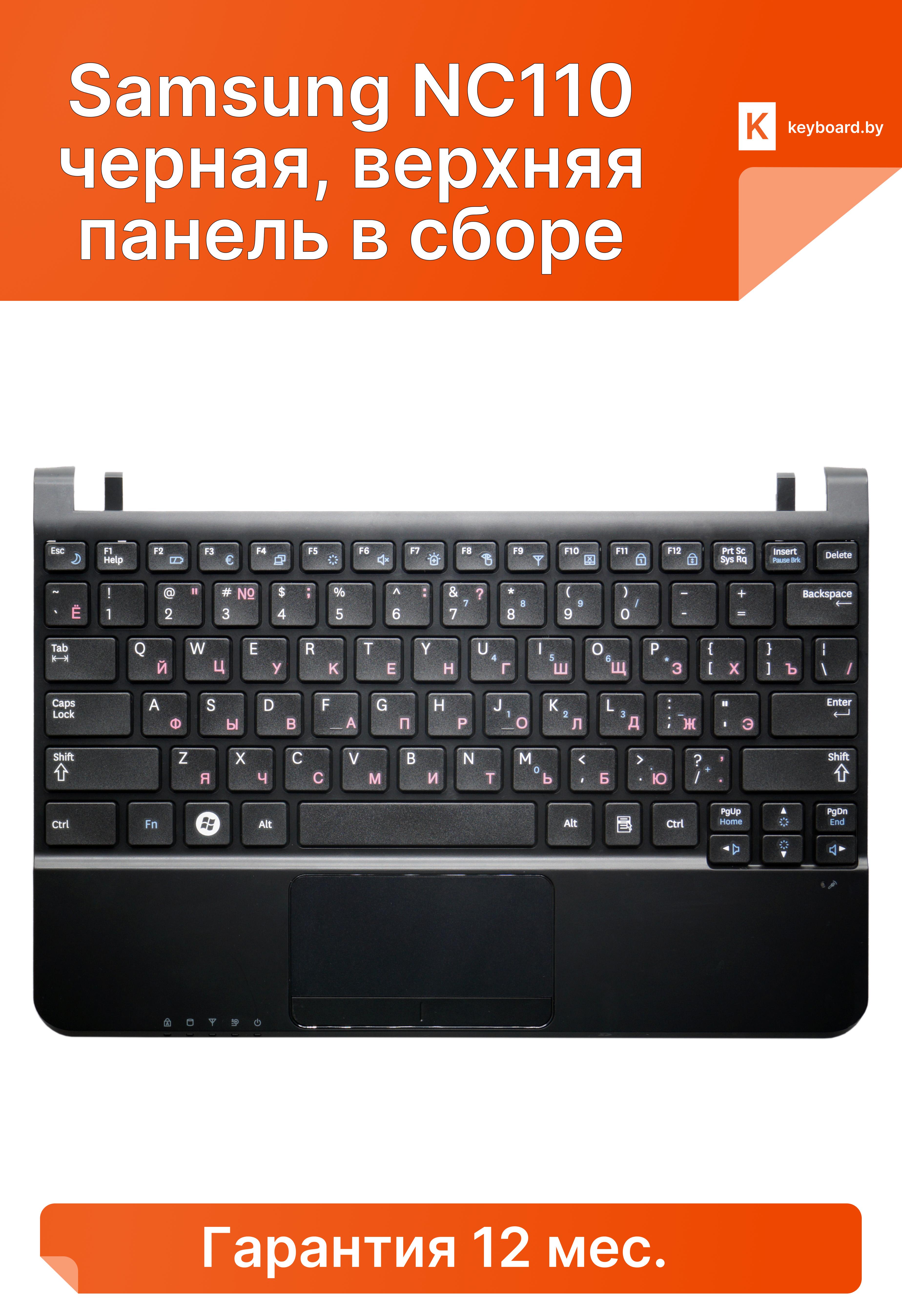 Клавиатура для ноутбука samsung nc110 черная, верхняя панель в сборе