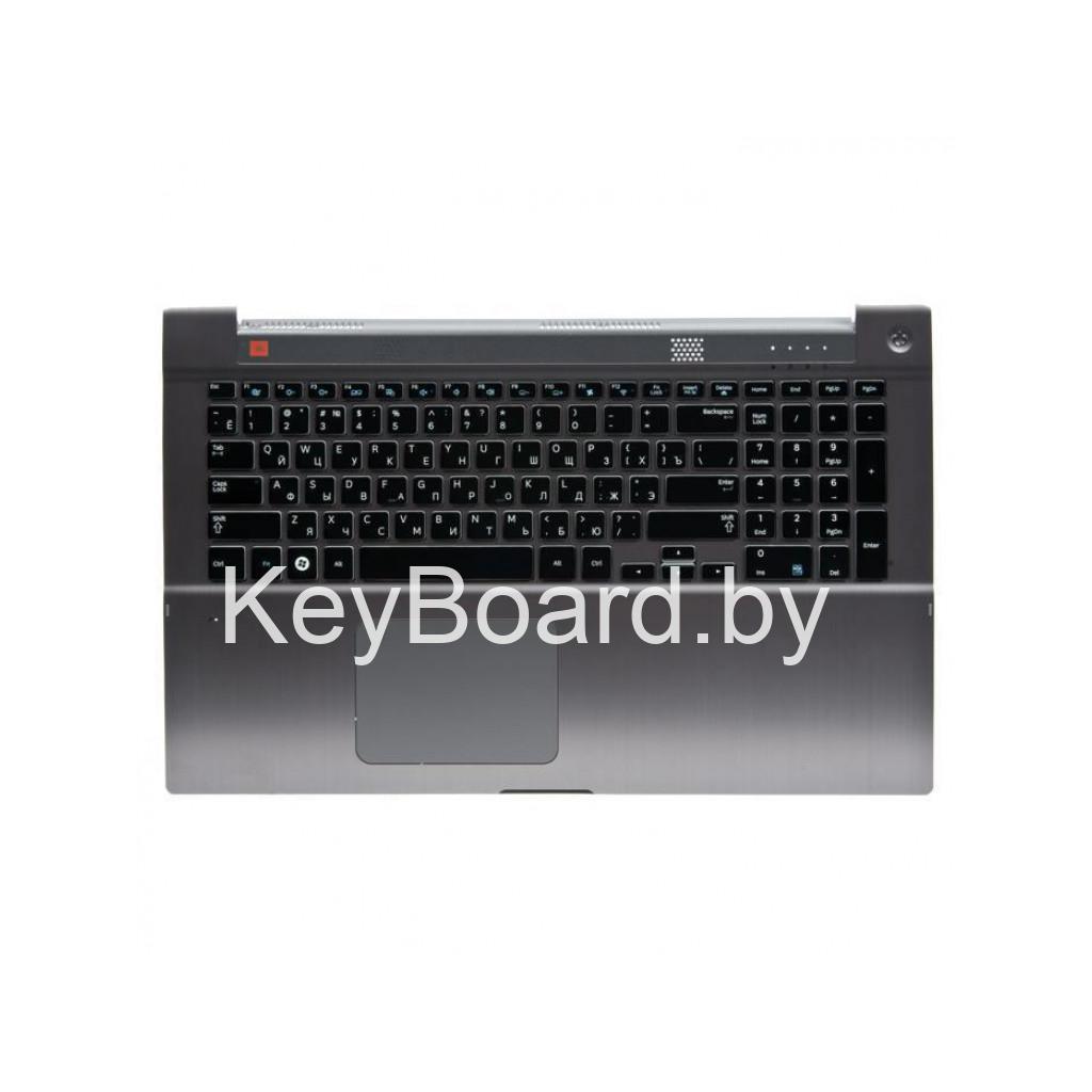 Клавиатура для ноутбука Samsung NP700Z7C черная, верхняя панель в сборе (серая)