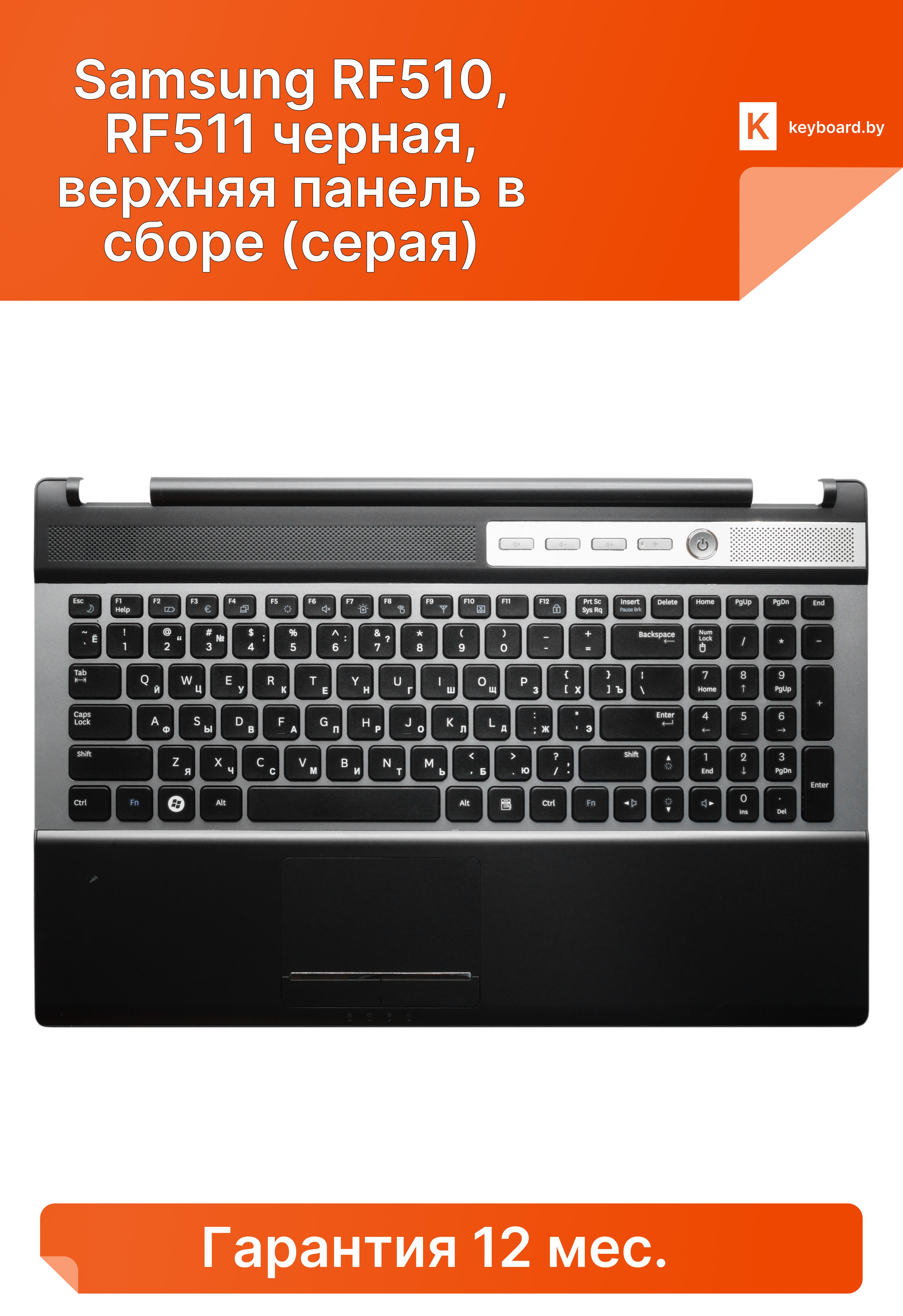 Клавиатура для ноутбука samsung rf510, rf511 черная, верхняя панель в сборе (серая)