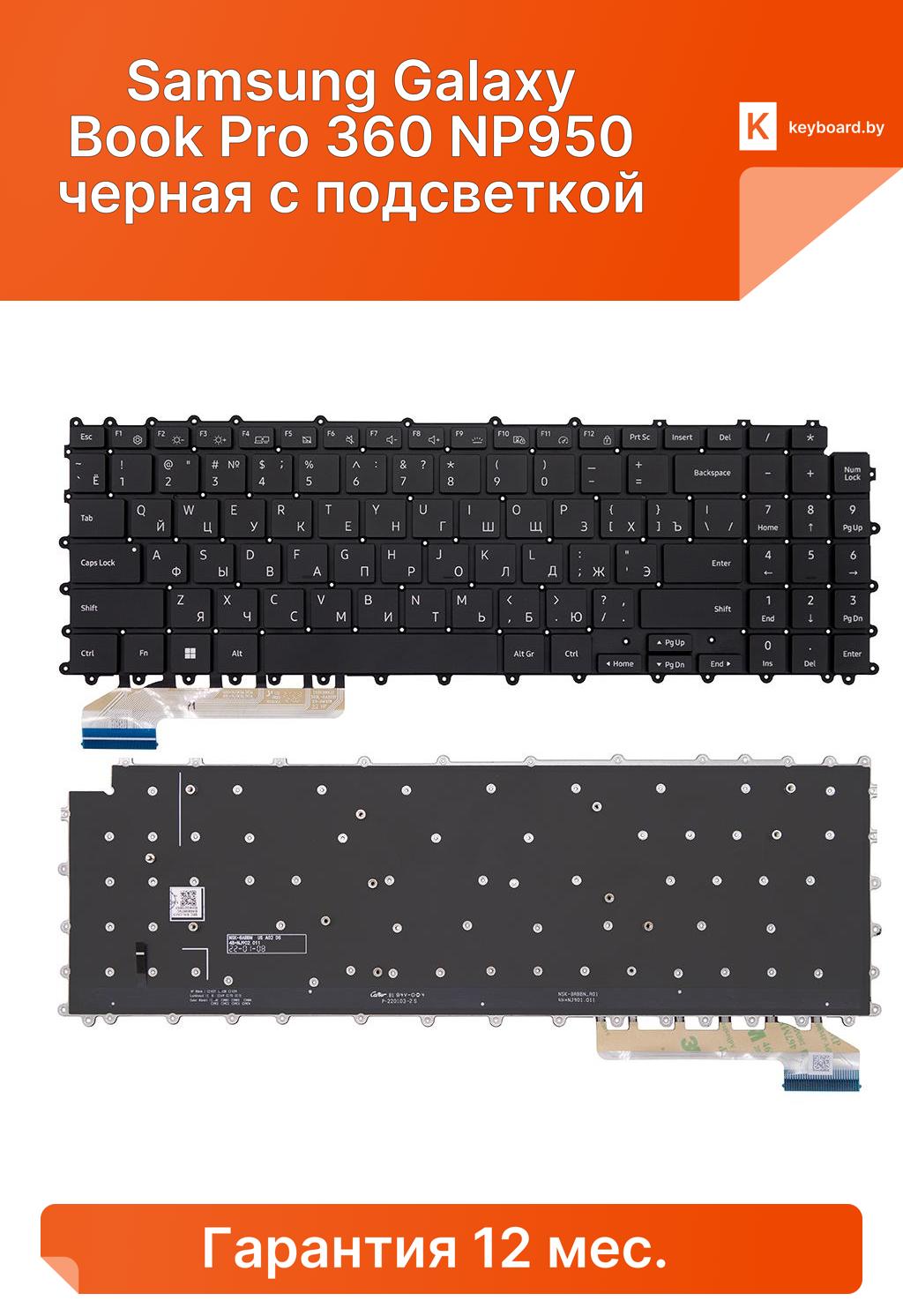 Клавиатура для ноутбука samsung galaxy book pro 360 np950 черная с подсветкой