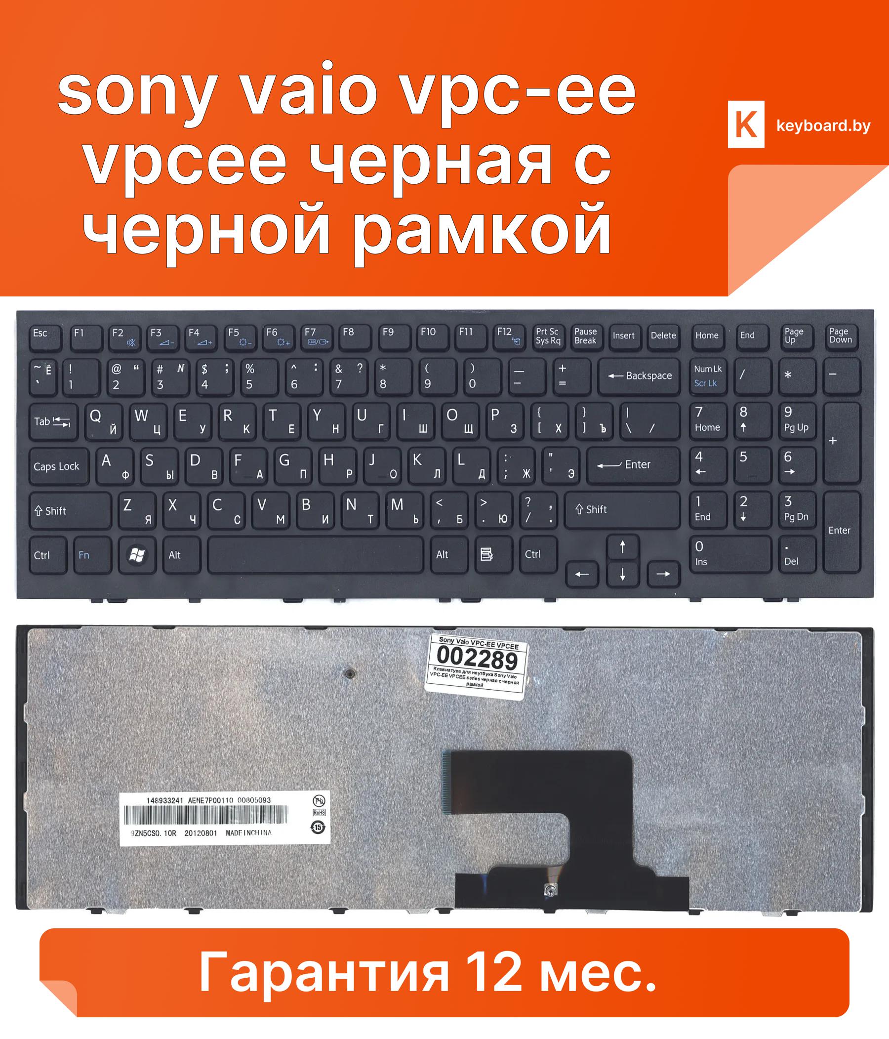Клавиатура для ноутбука sony vaio vpc-ee vpcee черная с черной рамкой