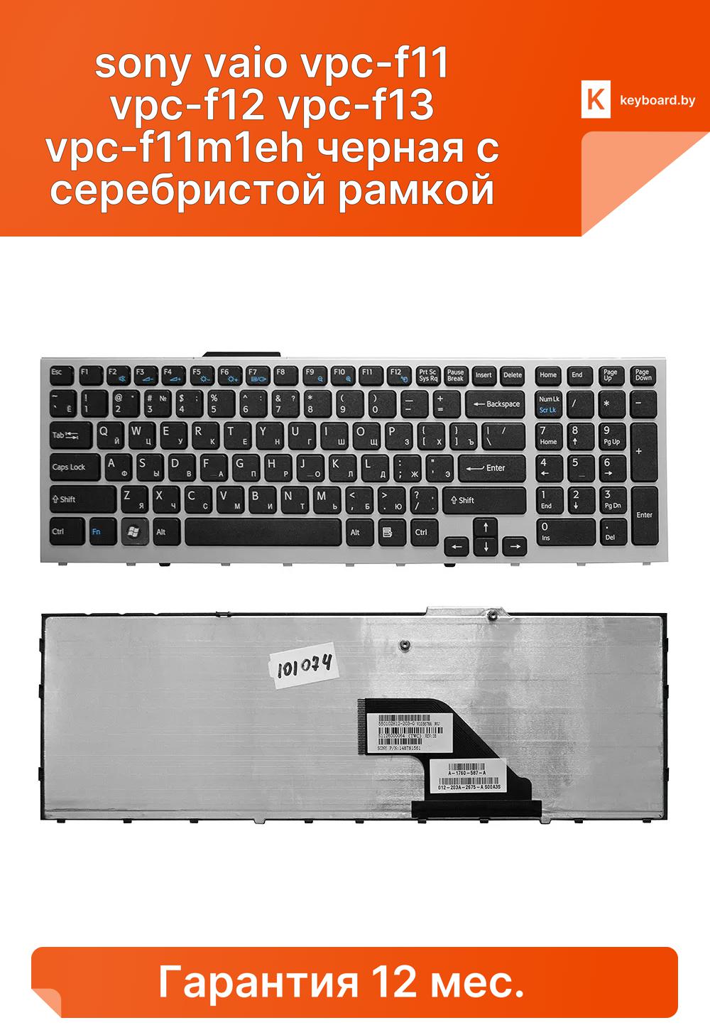 Клавиатура для ноутбука sony vaio vpc-f11 vpc-f12 vpc-f13 vpc-f11m1eh черная с серебристой рамкой