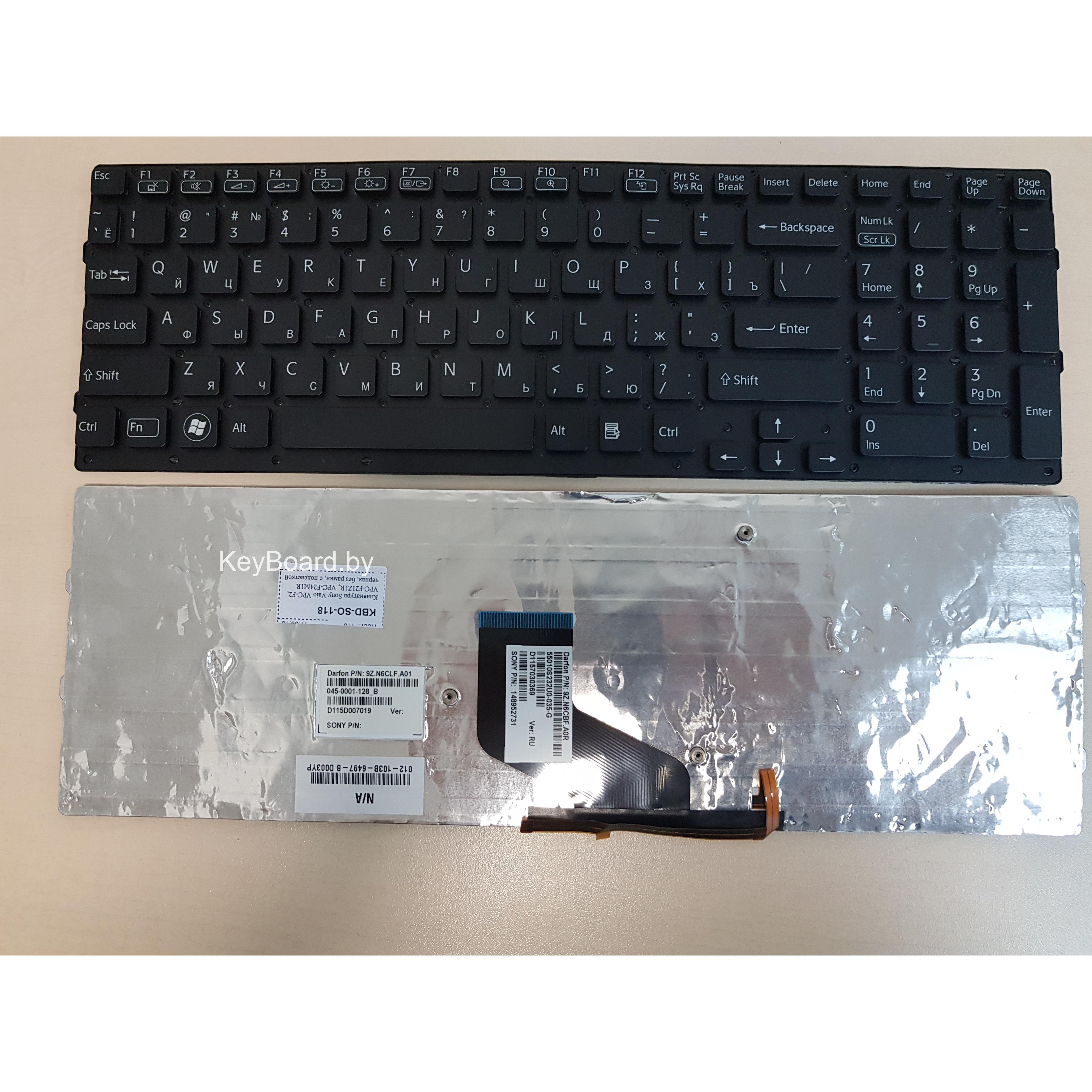 Клавиатура для ноутбука sony vaio vpc-f2, vpc-f21z1r, vpc-f24m1r черная, без рамки, с подсветкой