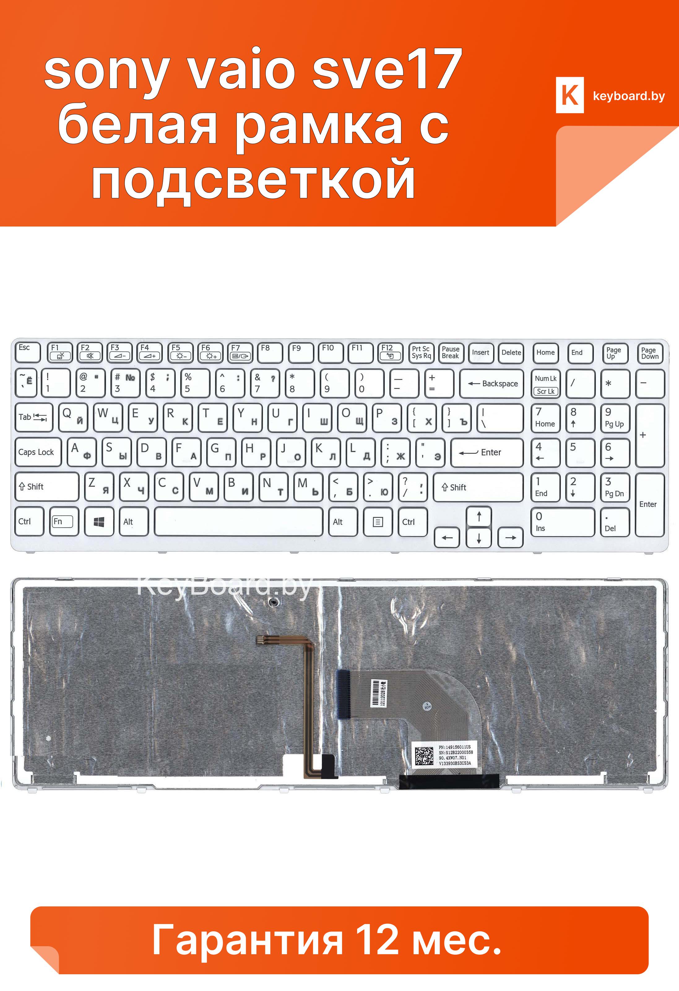 Клавиатура для ноутбука sony vaio sve17 белая рамка с подсветкой
