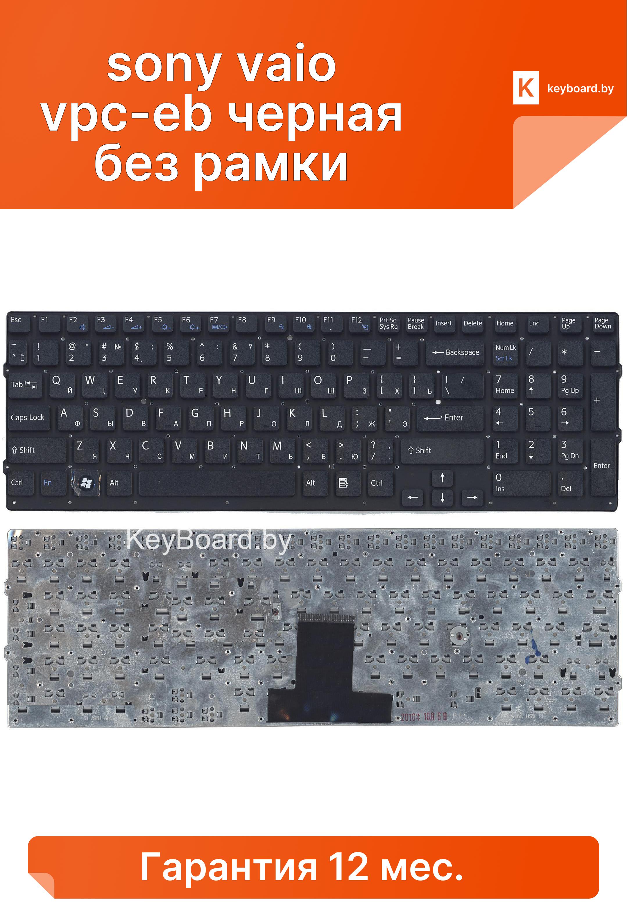 Клавиатура для ноутбука sony vaio vpc-eb черная без рамки
