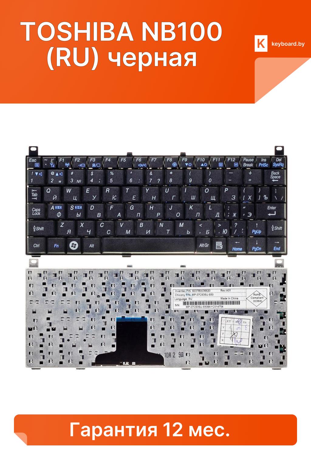 Клавиатура для ноутбука toshiba nb100 (ru) черная