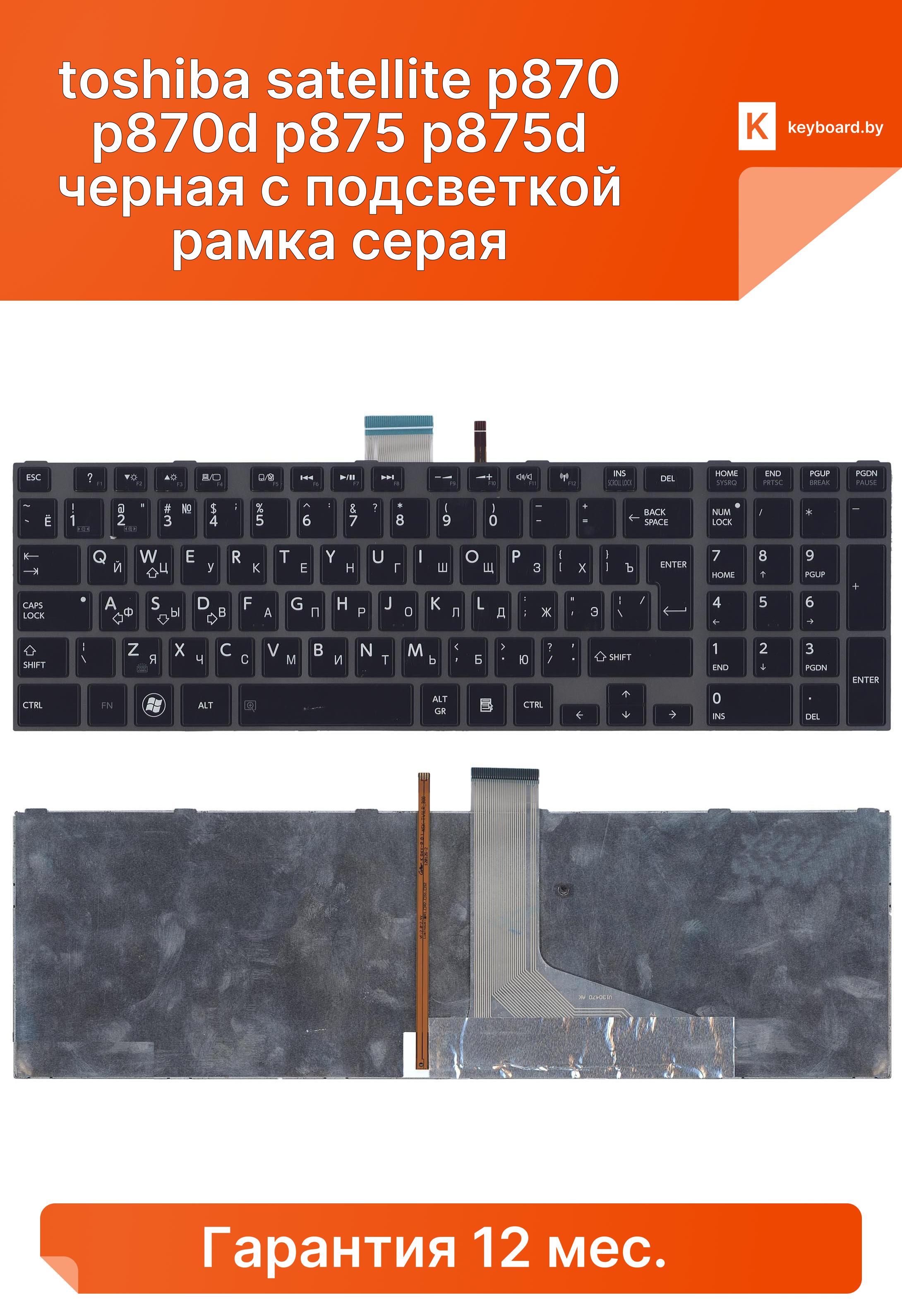 Клавиатура для ноутбука toshiba satellite p870 p870d p875 p875d черная с подсветкой рамка серая