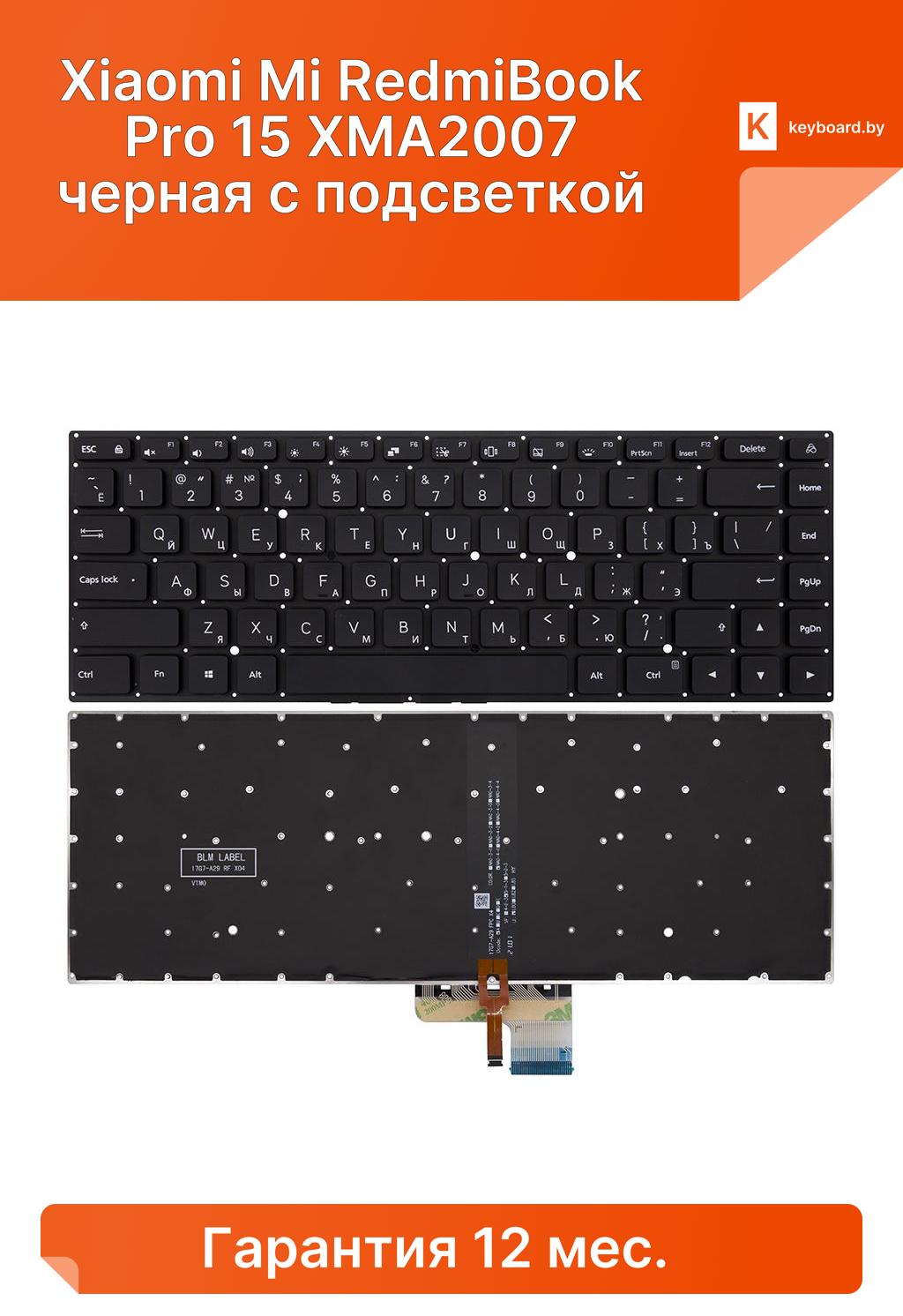 Клавиатура для ноутбука для ноутбука xiaomi mi redmibook pro 15 xma2007 черная с подсветкой